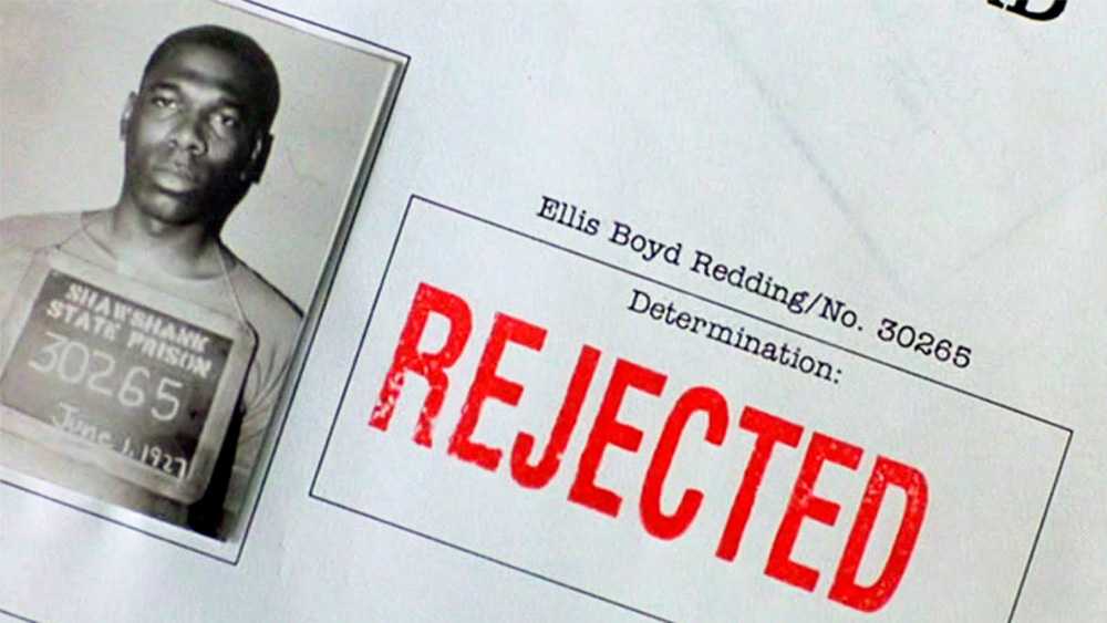 Проходит время. После почти сорока лет заключения Ред получает условно-досрочное освобождение. Но выйдя на свободу, он понимает, что ему нет места в окружающем мире: за десятилетия, проведенные в тюрьме он перестал даже представлять себя вне её стен. Развлечением Реда становится поиски камня Энди: по выходным он путешествует автостопом в Бакстон, разыскивая подходящие окрестности. После нескольких месяцев он находит тот самый луг с камнем. Под камнем лежит письмо, в котором Питер Стивенс приглашает Реда присоединиться к нему в Мексике. К письму приложена тысяча долларов.