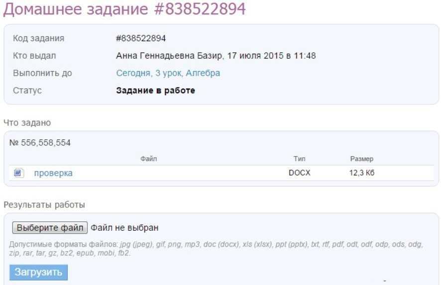 На сайте ребенок может отправить выполненное задание учителю в электронном виде: