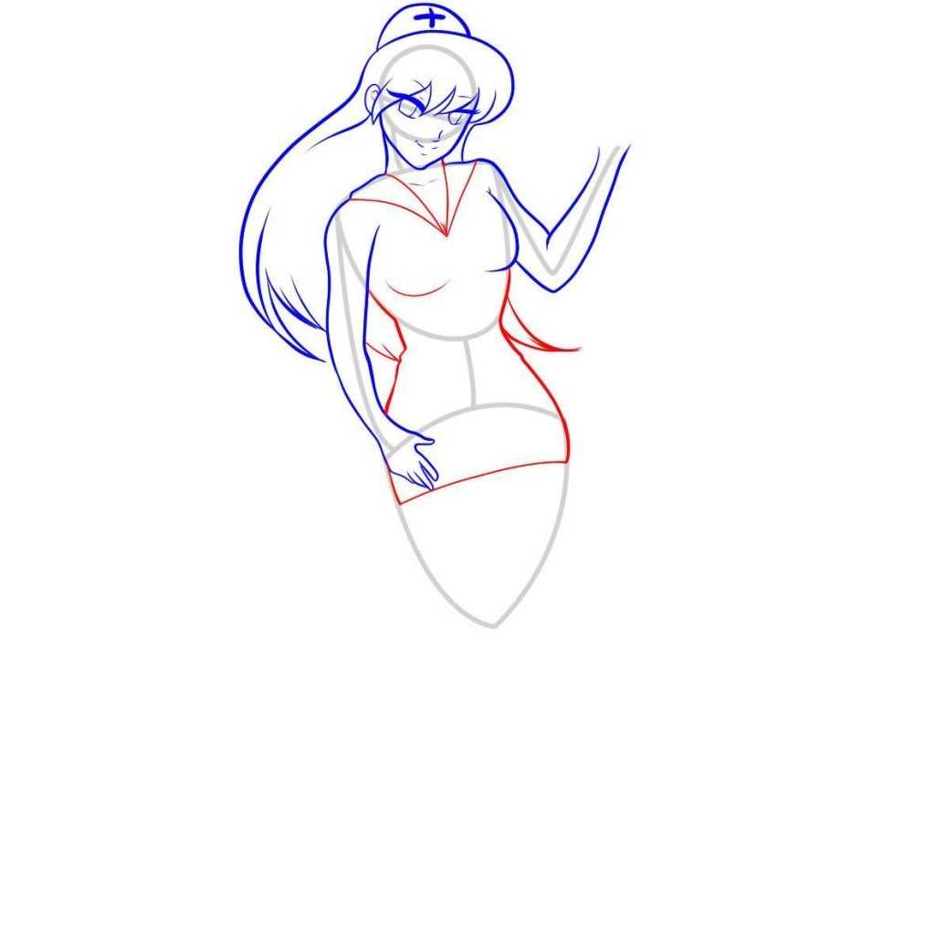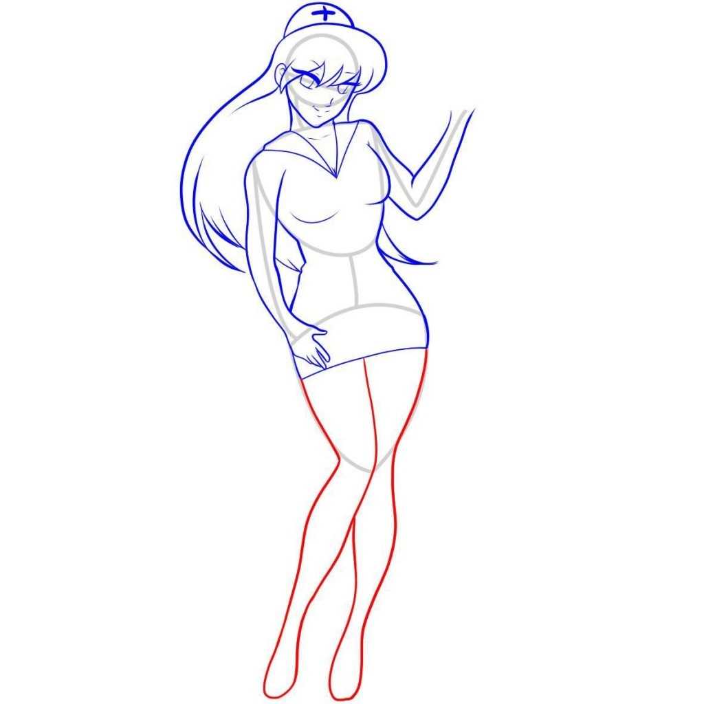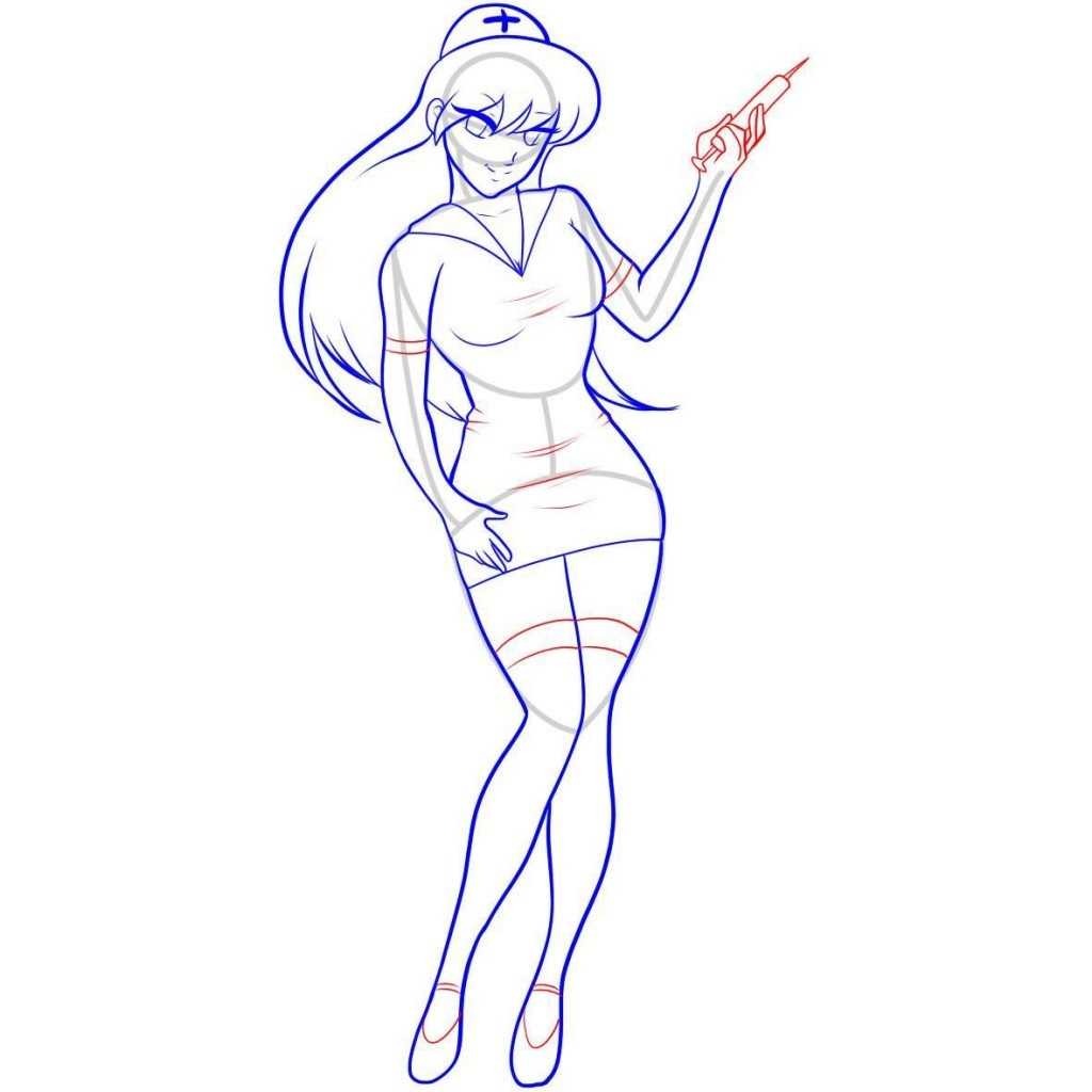 Подросток или взрослый могут попытаться нарисовать медсестру с женственной фигурой в стиле Аниме.