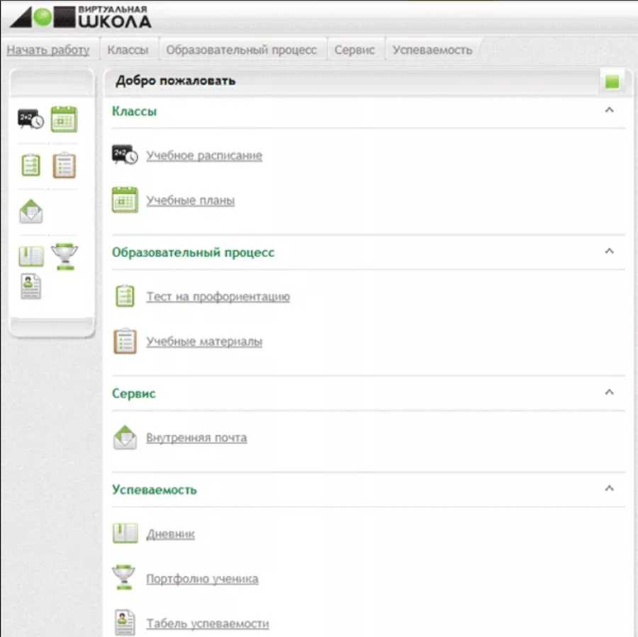 - После чего будет открыт личный кабинет системы виртуальная школа и пользователь получит доступ ко всем онлайн сервисам!