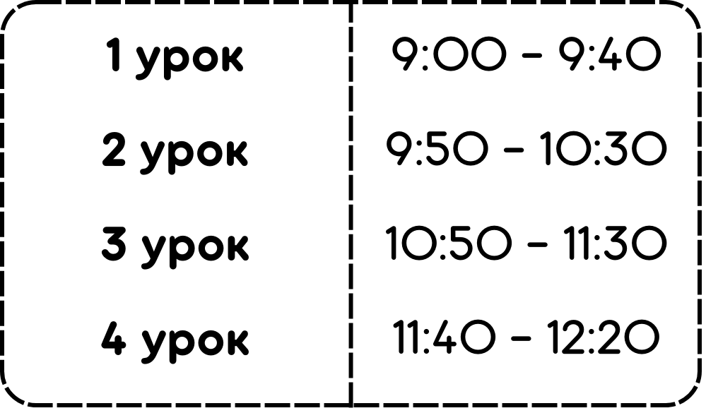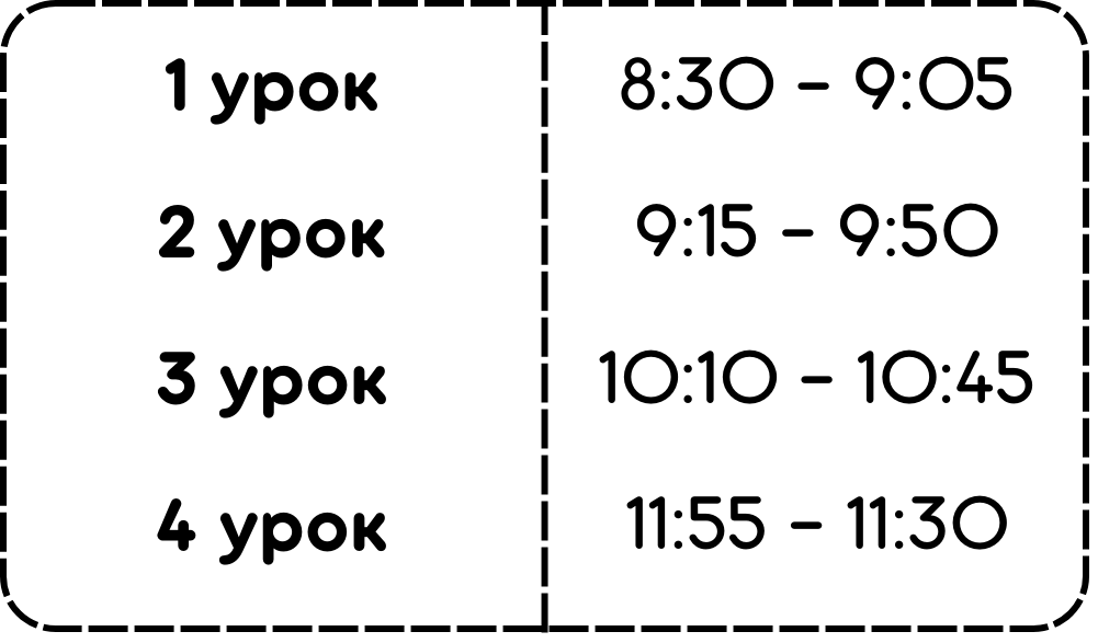 Последний 4 урок должен заканчиваться не позднее 11:20. В сентябре-декабре указанное время сокращается на 10 минут.