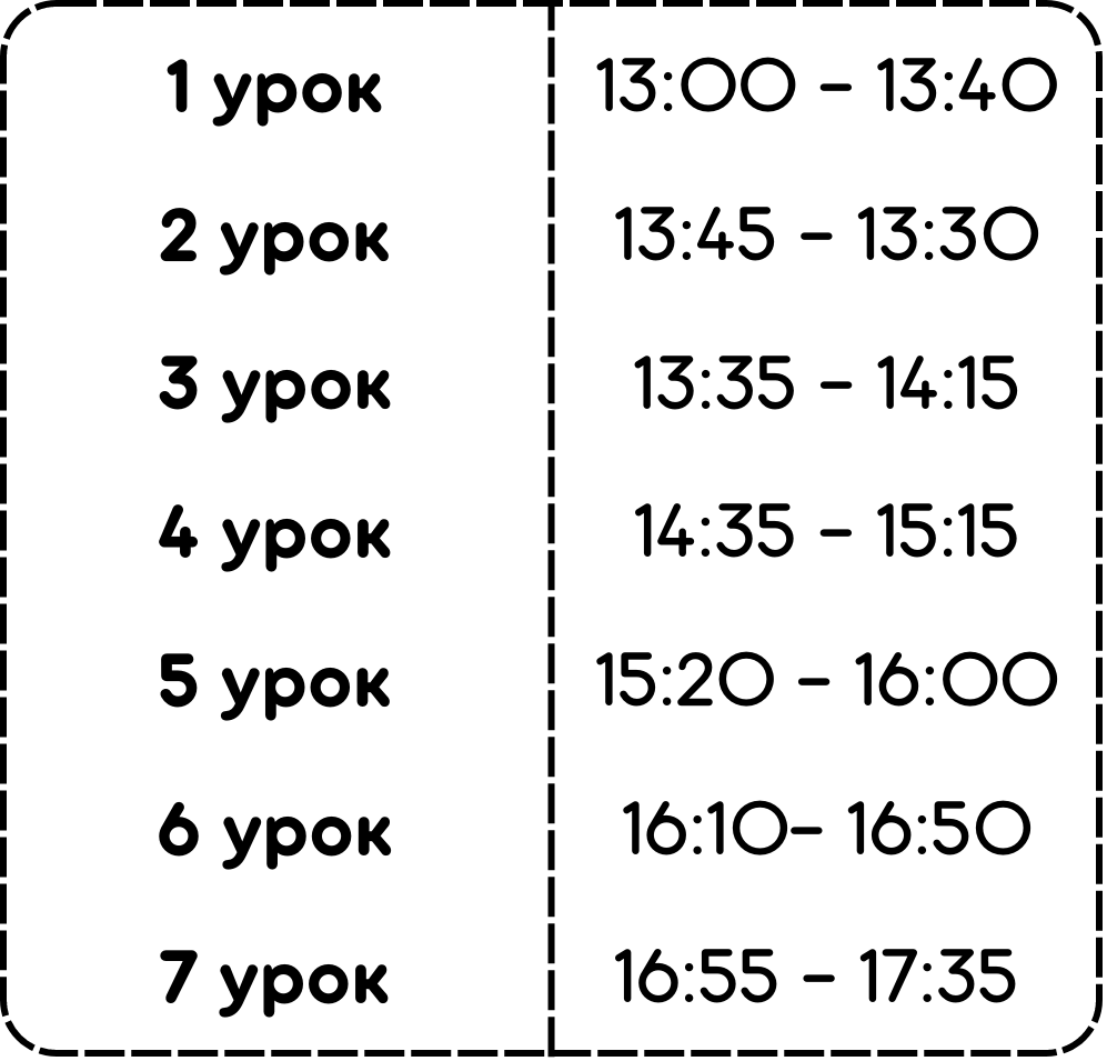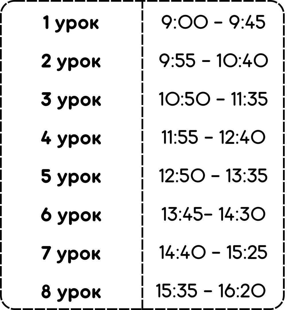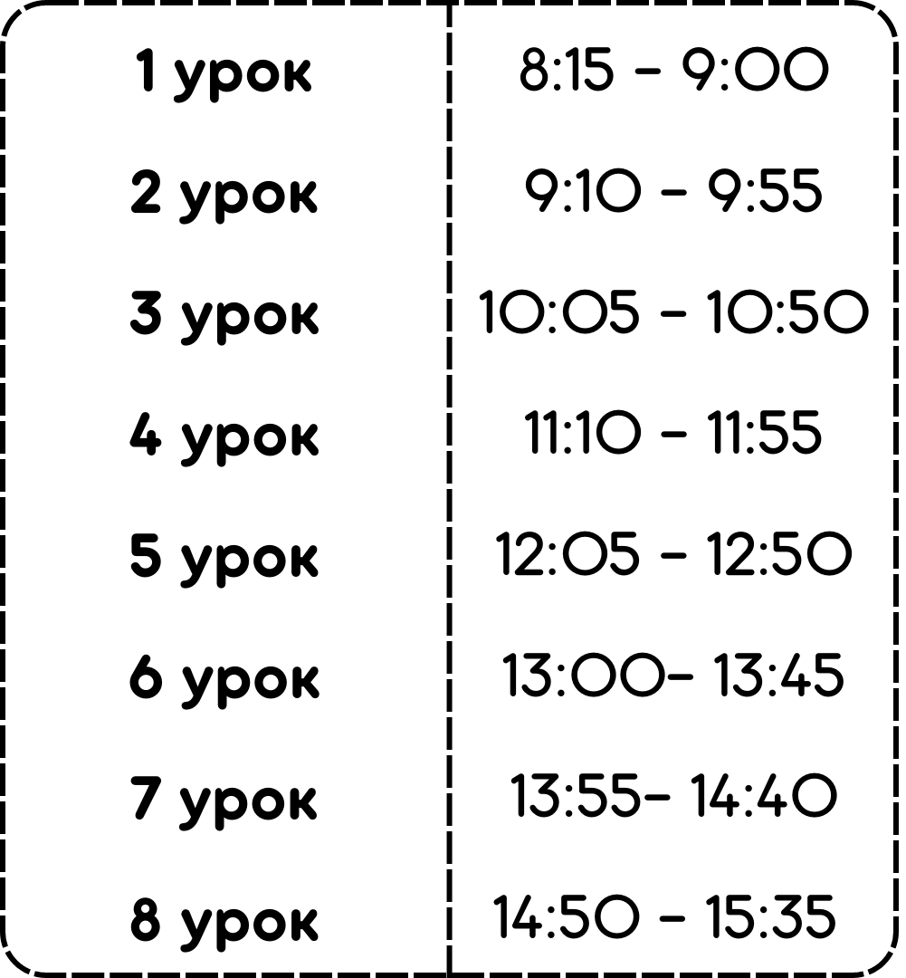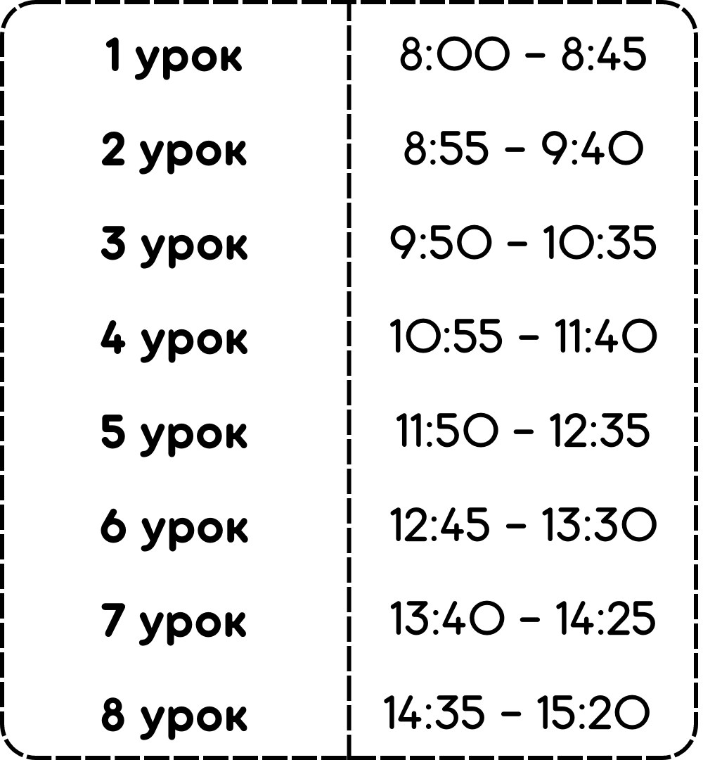 - 50 минут в средней и старшей школе (5-10-минутные перемены).