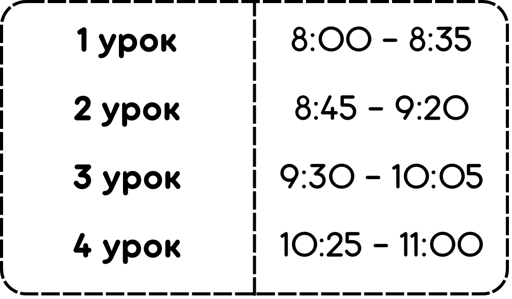 уроков (45 минут для 2-4 класса и 35-40 минут для первоклассников).