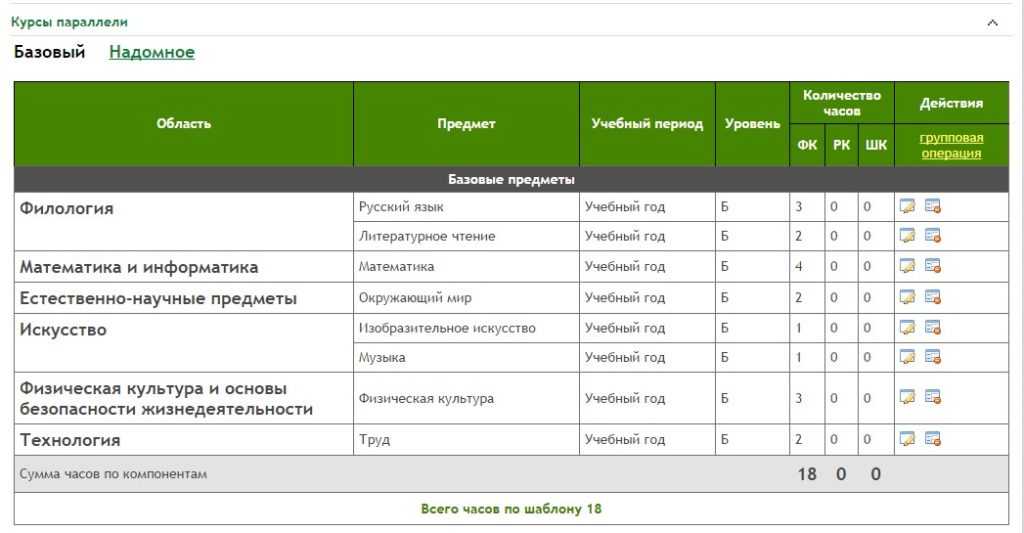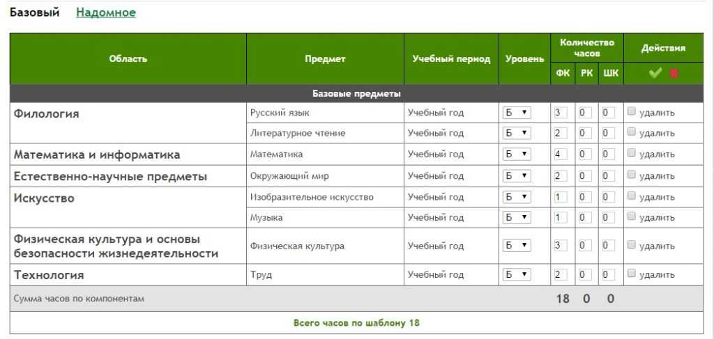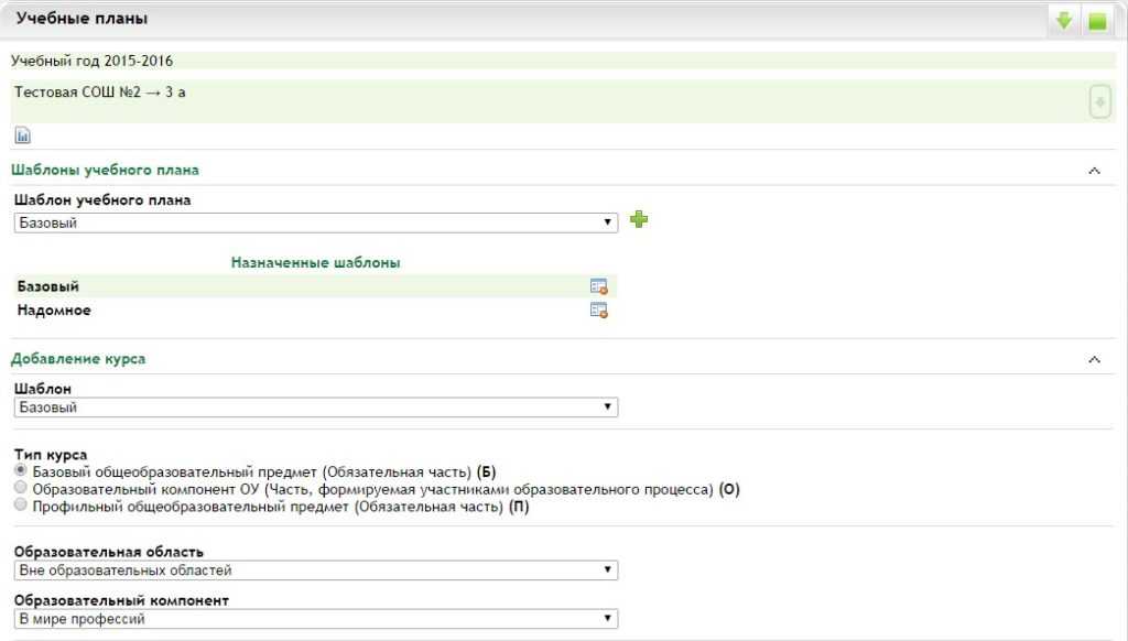 Помимо базового на класс можно назначить один или несколько созданных шаблонов. Для этого в разделе «Шаблоны учебного плана» нужно выбрать необходимый и нажать