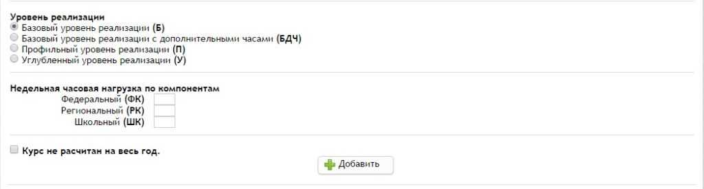 Теперь можно внести изменения в столбцы «Уровень реализации» и «Количество часов» любого из курсов или отметить курсы на удаление (крайний правый столбец). После чего для сохранения изменений нужно кликнуть на